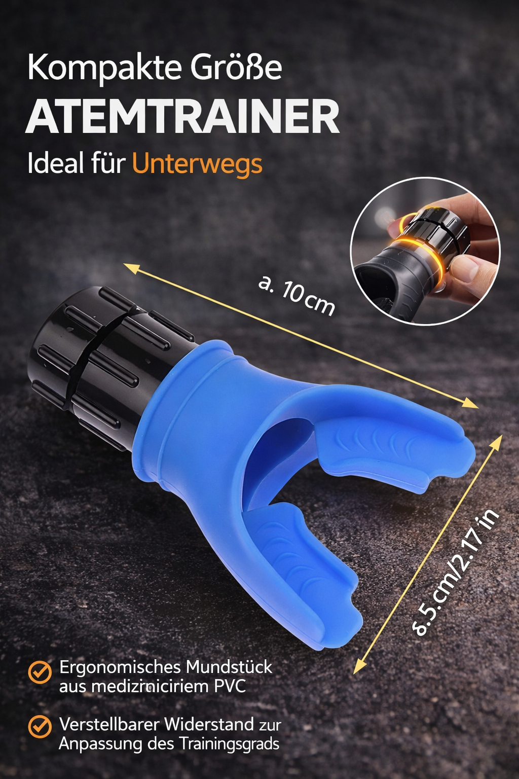 Atemtrainingsgerät für mehr Ausdauer und bessere Lungenleistung. Mit einstellbarem Atemwiderstand für individuelles Training.
